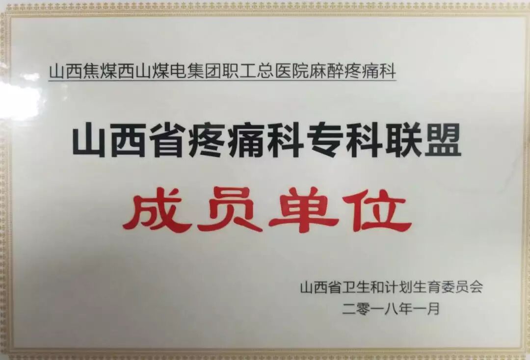 西山总医院在2018年1月正式与山大一院合作,并成为山西省疼痛专科联盟成员单位。