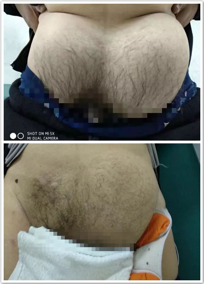 入院后,诊断为双侧腹股沟区巨大疝,经检查肿物分别约15*20cm和20*25cm大小,普外科崔建兵主任团队及时为老人进行对症治疗,还纳疝囊、束缚双侧腹股沟区,以适应腹腔高压状态。经过术前会诊、讨论、评估后,为保证修补效果良好,规避腹腔室隔综合征等并发症,结合患者实际情况,决定为老人先行单侧疝修补术,在麻醉手术科的大力配合下,采用腰硬联合麻醉,成功实施右侧腹股沟区巨大复合疝无张力修补术。康复出院一个月后老人再次返院行左侧腹股沟区巨大疝无张力修补术,并如期康复出院。