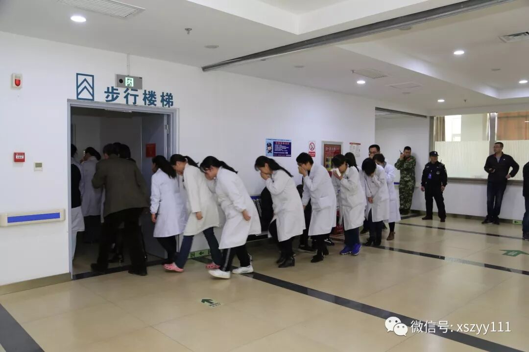 活动在副院长姜荣权“开始”的一声令下正式启动,相关人员各就各位,按照预案,灭火组成员用灭火器和室内消防栓水枪进行模拟灭火后关闭防火门;救护组成员稳定疏散人员情绪,大声指挥,教育大家撤离时要用湿毛巾捂住口鼻,弯腰撤离,并对受伤人员进行及时救治;警戒组成员告知大家疏散后集合地点;疏散组成员发现有人受伤,第一时间通知救护组;撤离后,各组负责人整理队伍,清点人数,并将情况进行汇报。疏散演练完毕,消控室恢复消防设施功能。