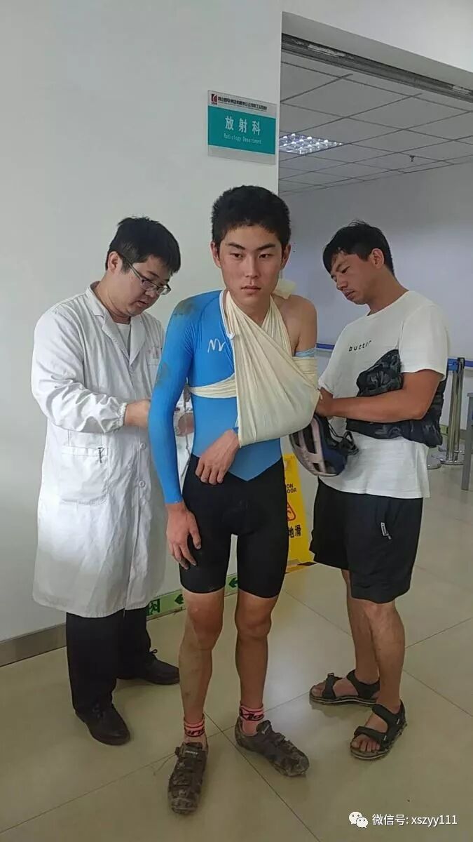 比赛当天大雨磅礴,赛道泥泞湿滑,运动员们不时有滑倒受伤现象,小组成员及时给予处理并细心解答场内人员的医疗咨询。上午9时许,一名运动员摔倒,肩部受伤,急救人员积极展开现场救治,并迅速在市急救中心调度下,护送受伤患者到院治疗。急诊科开通绿色通道,从接诊、拍片到出诊断报告,用时8分钟,确诊为左肱骨大结节撕脱性骨折,予以三角巾固定患肢制动、门诊观察治疗。获得患者称赞及市卫计委领导好评。