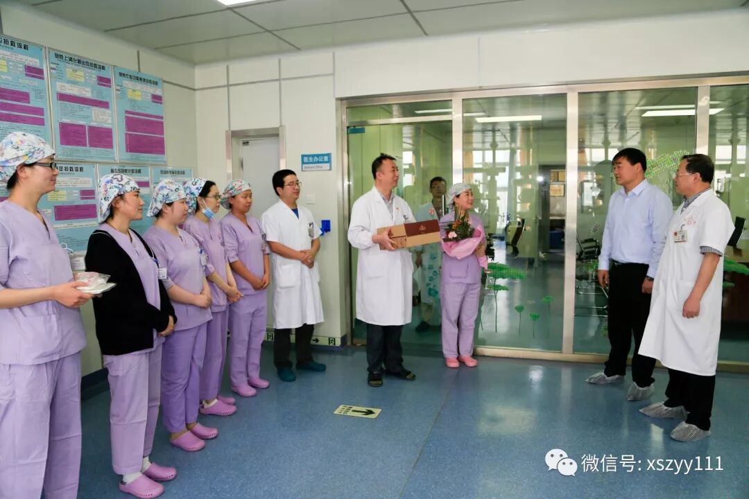 四、开展了护士节慰问活动, 5月11日上午院长杜社教、主管院长姜荣权及护理部主任王淑靖深入临床一线慰问节日期间坚守岗位的护理人员,为她们送去鲜花、蛋糕、问候及鼓励。院领导对临床护理工作给予高度评价并对护理人员的辛勤付出表示感谢,临床护理人员深受鼓舞。
