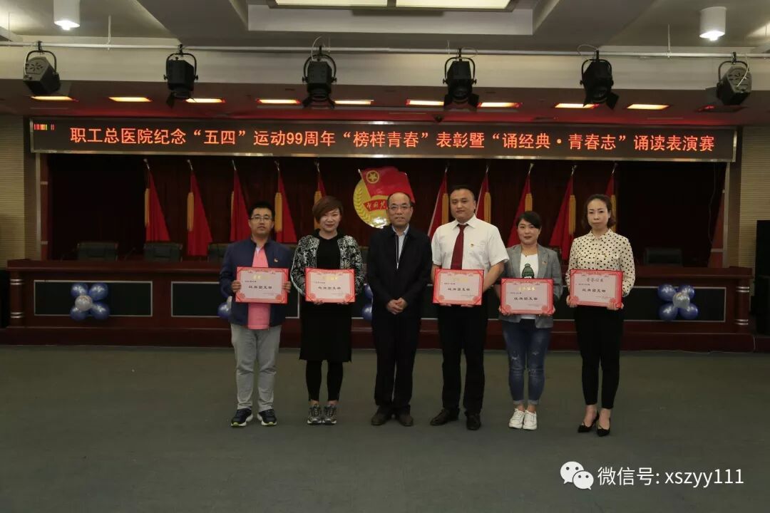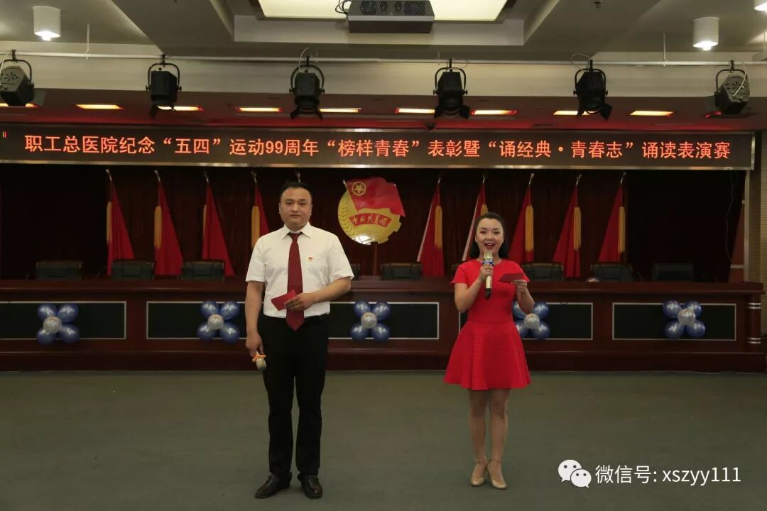 5月2日下午,西山总医院纪念“五四”运动99周年“榜样青春”表彰会暨“诵经典.青春志”青年诵读表演赛隆重召开。院党委书记刘培光、院党委副书记、纪委书记田洪萍、副院长姜荣权、赵焱和各党支部书记、职能部门负责人出席活动,全院共青团干部、青年代表共百余人参加活动。